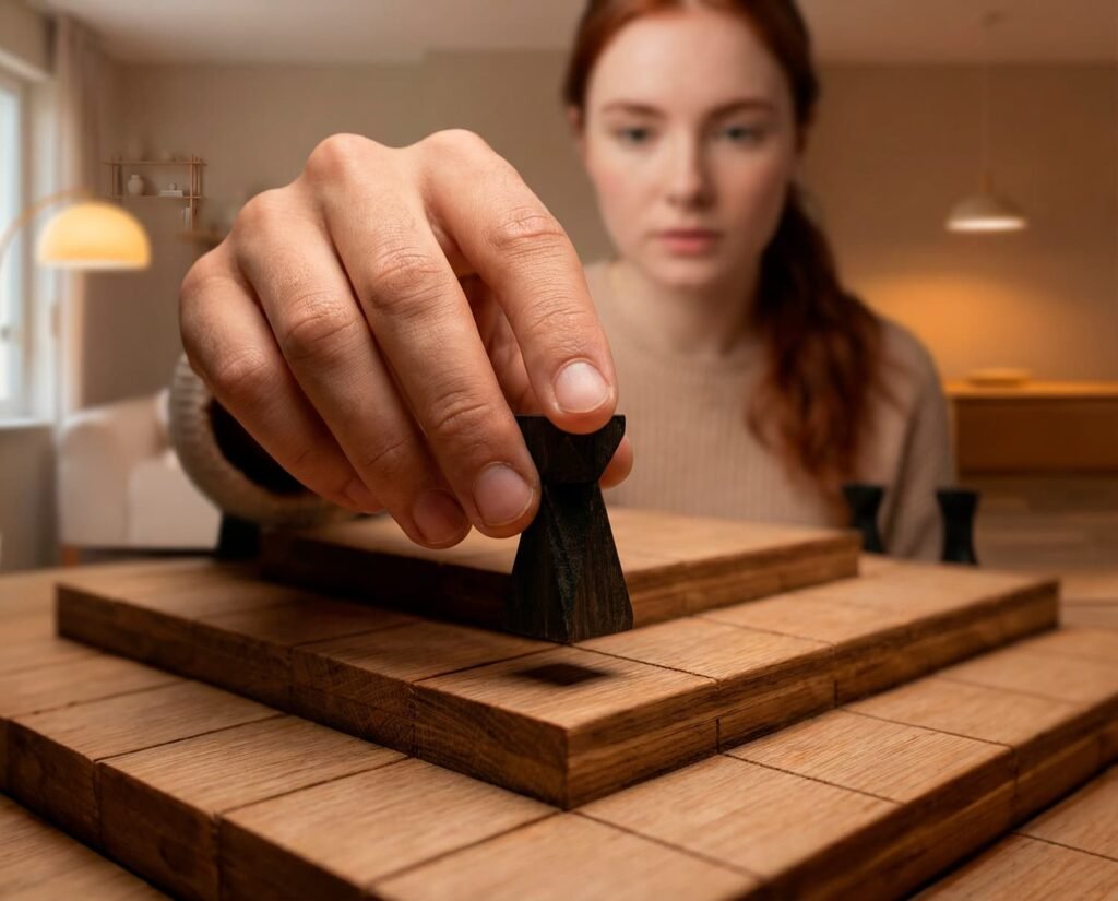 Este juego ofrece una experiencia táctil al igual que los juegos de antaño, uniendo materiales nobles tradicionales con modernos para crear una experiencia única tanto visual como sensorial.